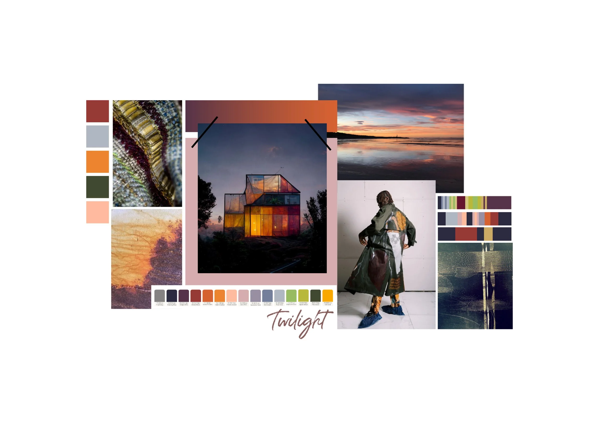 ‘New Horizons’ is a 35 page downloadable PDF document packed with inspiring visuals, colour palettes and fabric swatches which will help guide your design decisions for 2023 and beyond. Our five themes, “New Shoots”, “Sea Escape,” “Vibrance”, “Origins”, and “Twilight” are diverse in appearance but carry the same vital themes of sustainability and well being which you can use as a sold starting point for your own creations.